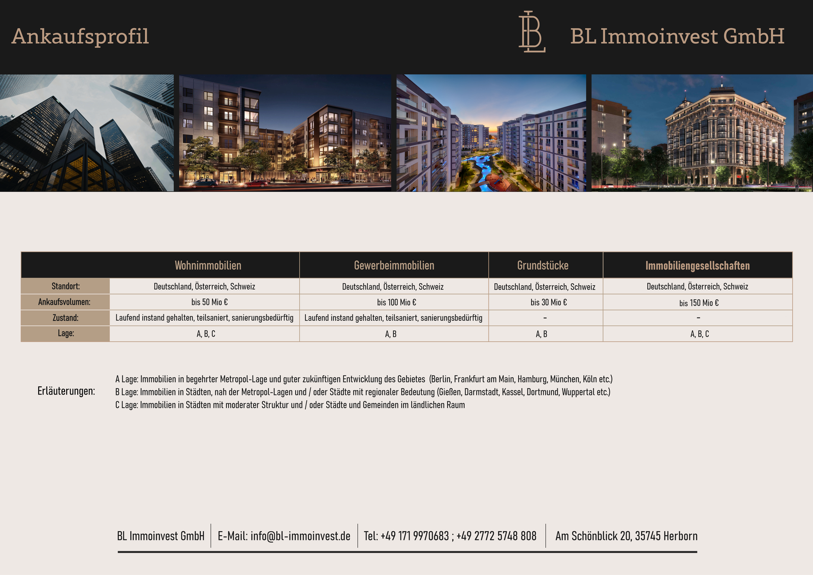 Unsere Kernkompetenz liegt im Immobilieninvestment mit dem Ziel, unser wachsendes Portfolio an attraktiven Anlageobjekten kontinuierlich zu erweitern. Zu unserem Ankaufsprofil zählen Wohnimmobilien, Grundstücke, Gewerbeimmobilien sowie Immobiliengesellschaften. Der Mehrwert für Sie: Wir bringen unsere langjährigen Kenntnisse des deutschen Immobilienmarkts mit ein, gestalten Preise fair und wickeln Kaufprozesse unkompliziert ab.